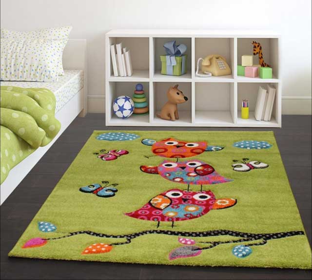 В детской лучше класть покрытия из вискозы большого размера, чтобы утеплить поверхность. Это защитит ребенка от переохлаждения и простудных заболеваний. Дети любят играть на полу в игры. Здесь разместится много игрушек. Желательно выбрать яркий цветовой принт. Производители выпускают специальные модели с изображениями сказочных героев.