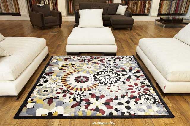 Ковровые покрытия, оформленные большими элементами узора, не кладут на пестрый разноцветный пол. Такие экземпляры будут смотреться нелепо и безвкусно. Оттенки смешаются.
