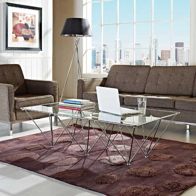 Для гостиной подойдет ковер в спокойной цветовой гамме, который будет радовать глаз хозяев и гостей. С его помощью пространство можно поделить на зоны. В такой комнате будет комфортно проводить досуг. Посредине одной из стен лучше установить телевизор. Возле края ковра расположить мягкую мебель (диван, кресла). Изделие из вискозы очертит контуры в комнате.