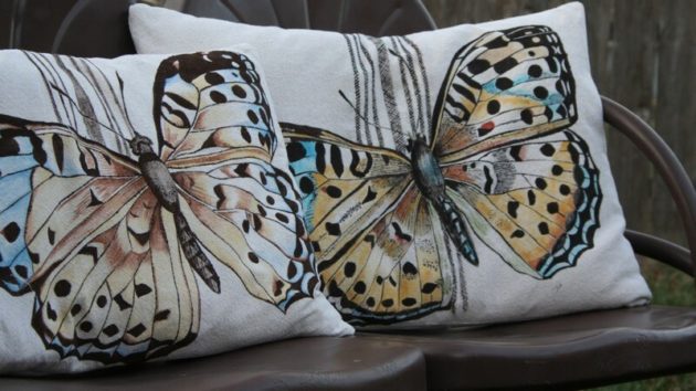 Можно не ограничиваься ручной росписью акрилом на одежде. Это может быть роспись по ткани декоративной подушки